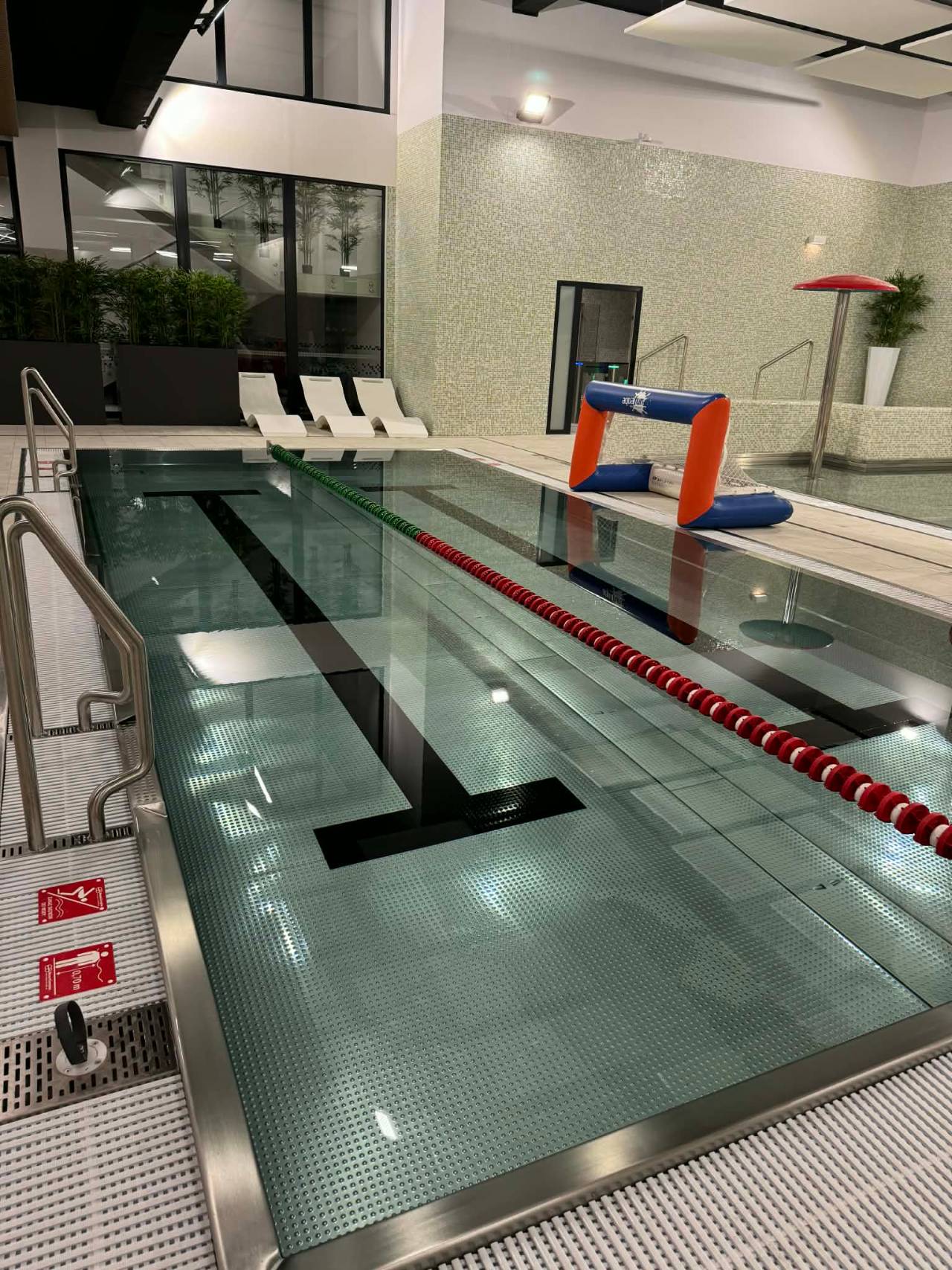 - Na terenie obiektu dostępny jest basenowy wózek inwalidzki.