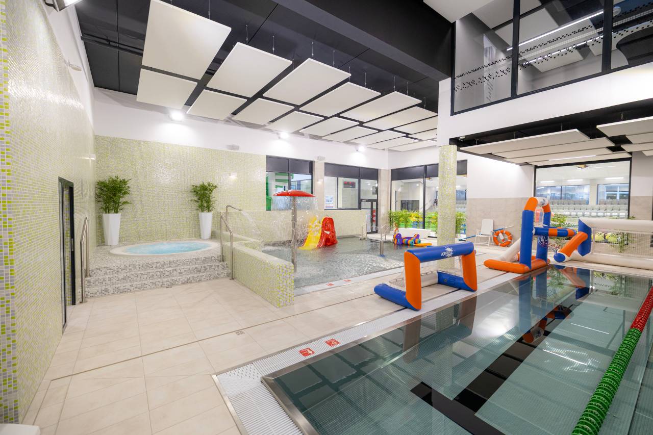 Do dyspozycji gości są: główny basen pływacki z sześcioma torami, basen do nauki pływania, jacuzzi, brodzik dla dzieci oraz zjeżdżalnia. Strefę relaksu uzupełniają sauna sucha i sauna mokra, idealne na regenerację po wysiłku.